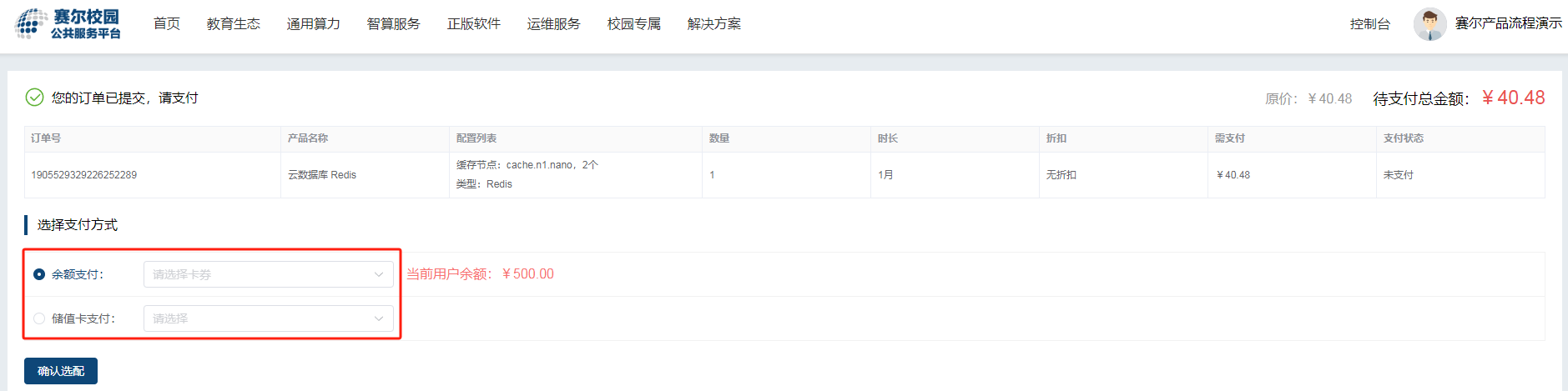 3.确定下单并支付,支付方式可选择余额或储值卡支付。