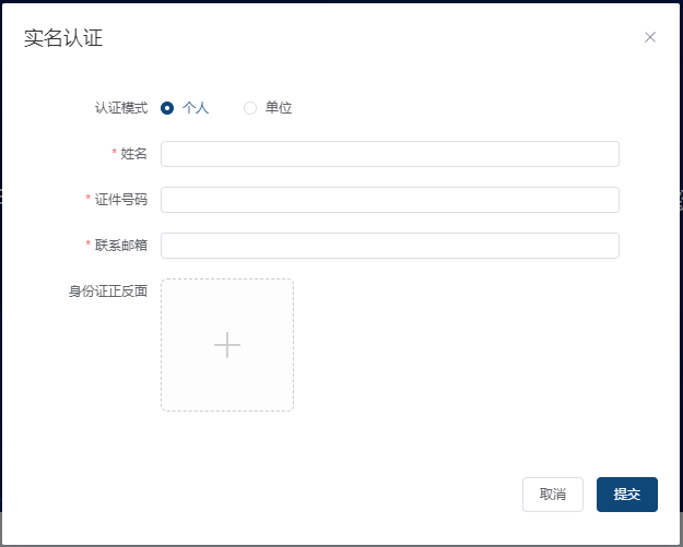 身份证正反面:必填,必须上传身份证正面和反面两张图片