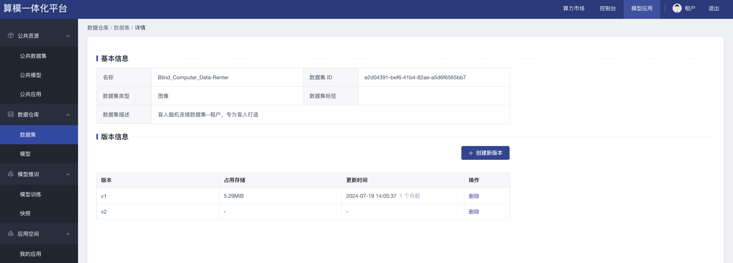 登录租户账号,点击【数据仓库-数据集】进入页面,该功能可增删改查管理私有数据集